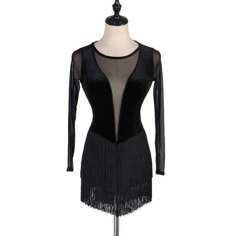 Платье с бахромой, женское Сетчатое, для латиноамериканских танцев, сценический костюм, сексуальная одежда для сальсы, румбы, танцевальная одежда, танцевальный наряд JL2621