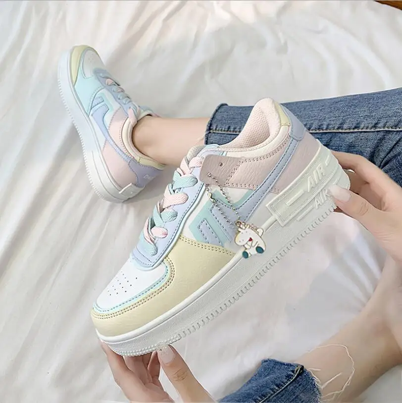 Женские кроссовки, 2021, модная Женская Студенческая обувь для скейтборда, высокая обувь, повседневная спортивная обувь на шнуровке