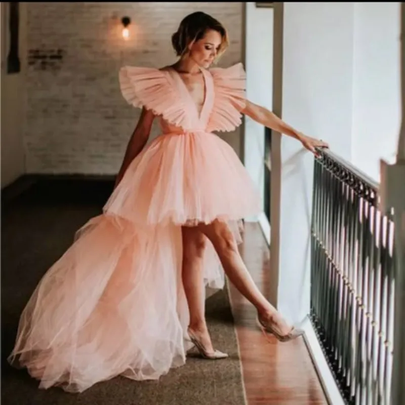 Милое Персиковое розовое короткое Пышное Тюлевое женское платье для...