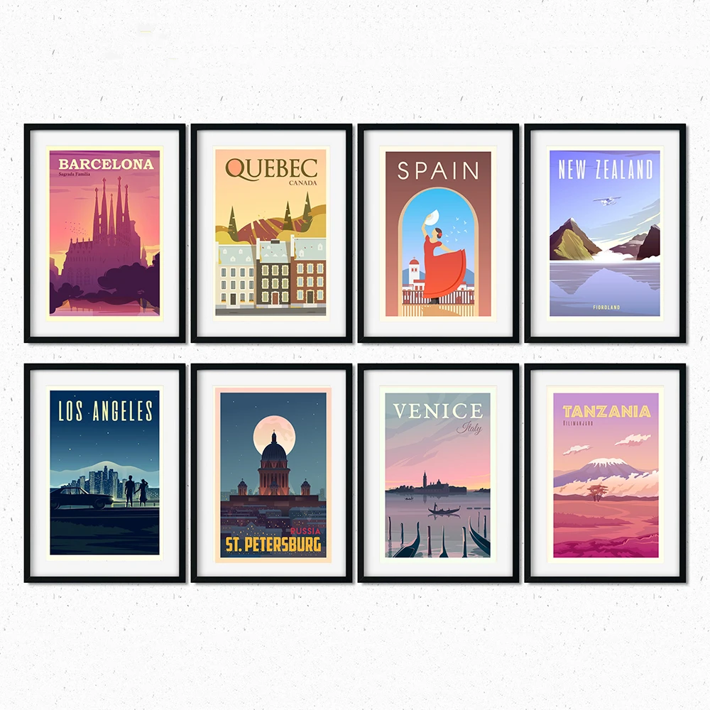 Скандинавский Винтаж путешествия города Испания Квебек Танзания Вен...