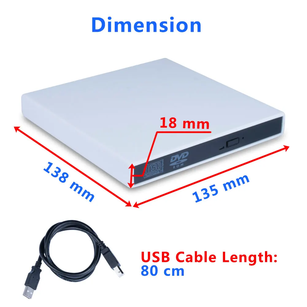 Автомобильный портативный DVD-плеер, универсальный внешний высокоскоростной CD-ROM с разъемом USB 2,0 для Mac Air Pro, ноутбуков и настольных ПК