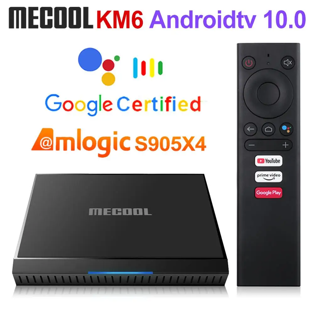 5 шт. Mecool KM6 Google Сертифицированный Android 10 ТВ контейнер под элемент питания 2 Гб оперативной памяти, 16 Гб встроенной памяти, процессор Amlogic S905X4 голосовой пульт дистанционного управления Управление 2,4G WI-FI 100 м BT4.2 Декодер каналов кабельного телевидения