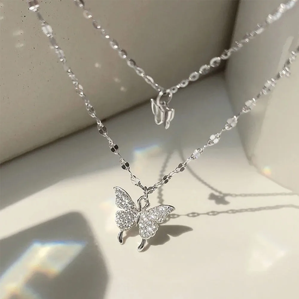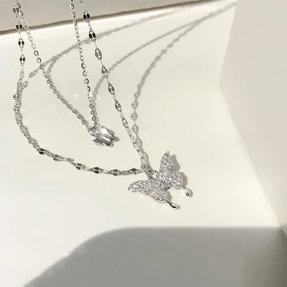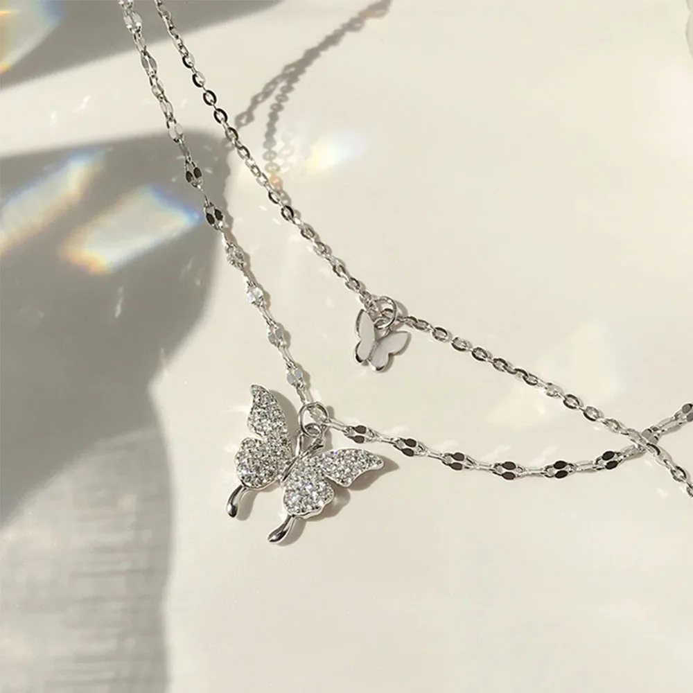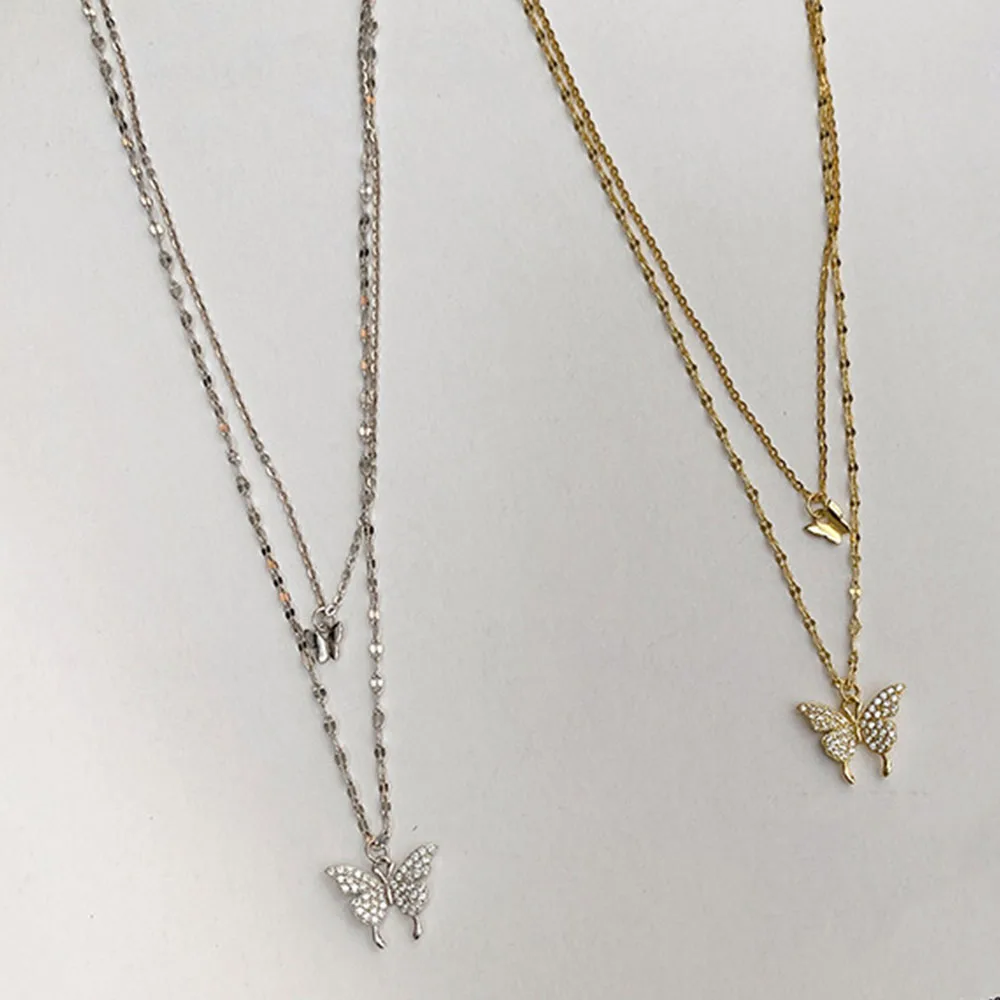 Модное блестящее ожерелье-чокер с кубической бабочкой женское изящное Двухслойное ожерелье до ключиц цепочка темпераментные ювелирные изделия аксессуары