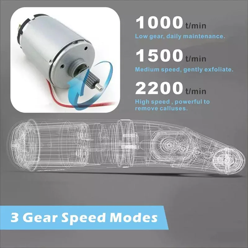 1000 т/мин Низкая передача, ежедневное техническое обслуживание 1500 т/мин Средняя скорость, мягко отшелушивает 2200 т/мин Высокая скорость, мощные мозоли toremove