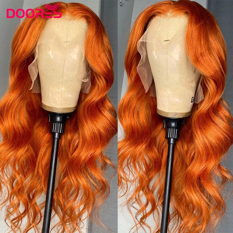 Парик из натуральных волос, Имбирно-оранжевых, объемных волнистых, цветных, для женщин, прозрачный парик на HD сетке, оранжевая волна, Т-образный парик на сетке, Бразилия
