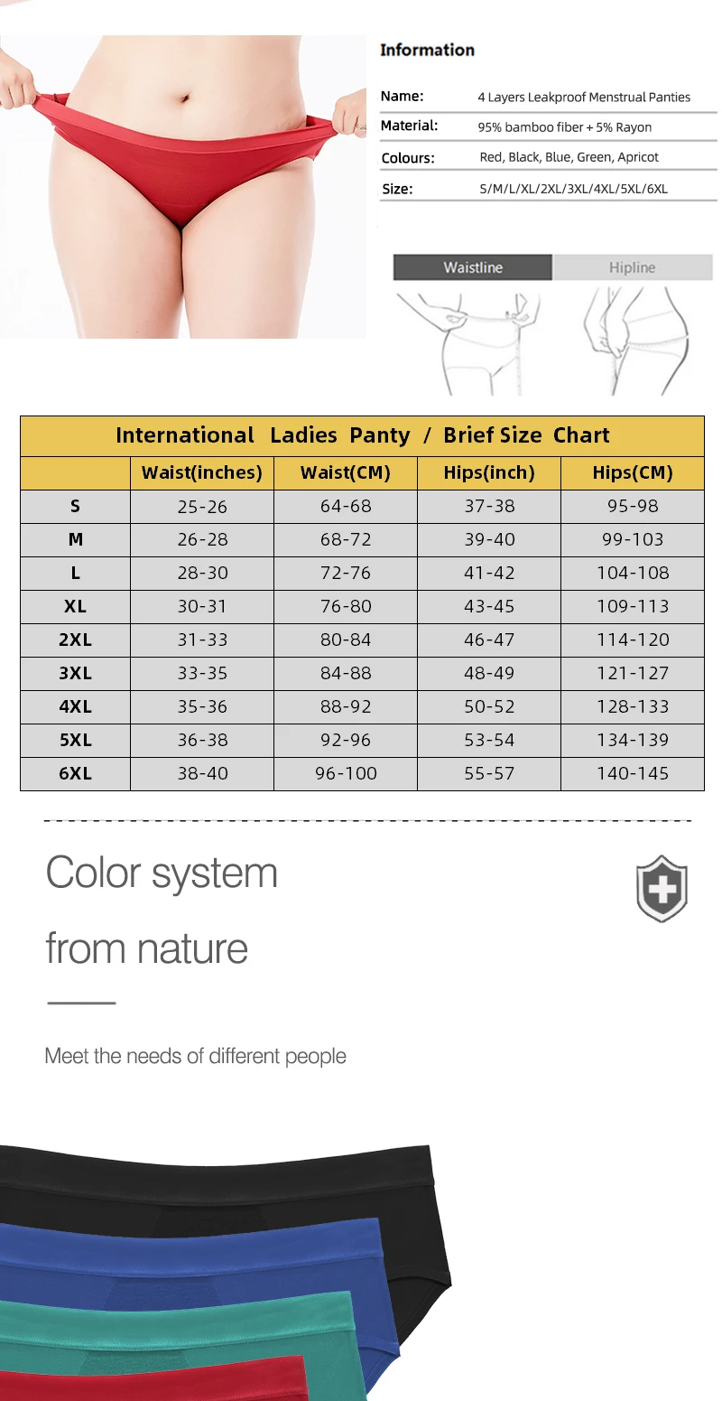 Женские непротекающие трусики из бамбукового волокна, тяжелая впитывающая способность, четырёхслойное герметичное женское нижнее белье для менструаций