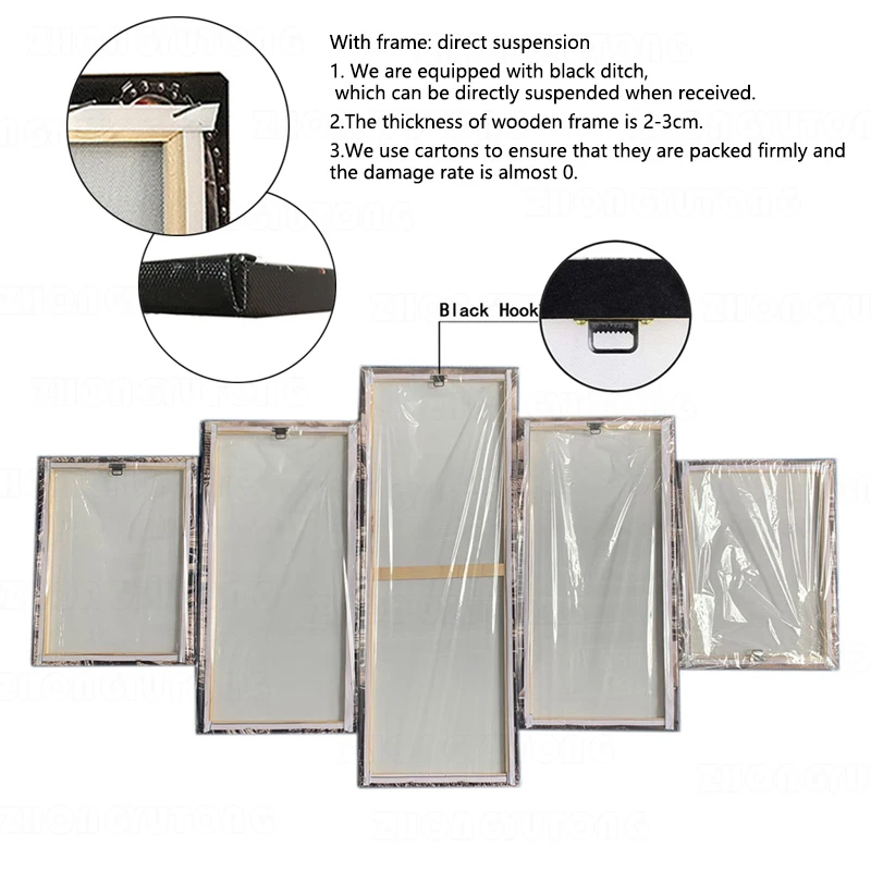 1. Мы оснащены черной канавой, которая может быть непосредственно приостановлена при получении. 2. Толщина деревянного каркаса 2-3 см. 3. Мы используем картонные коробки, чтобы убедиться, что они упакованы прочно и скорость повреждения составляет почти 0.