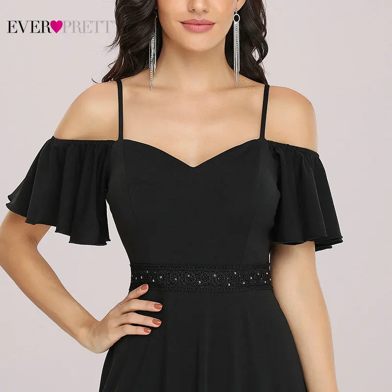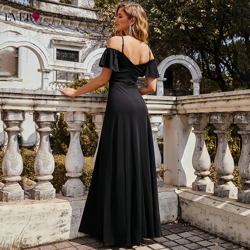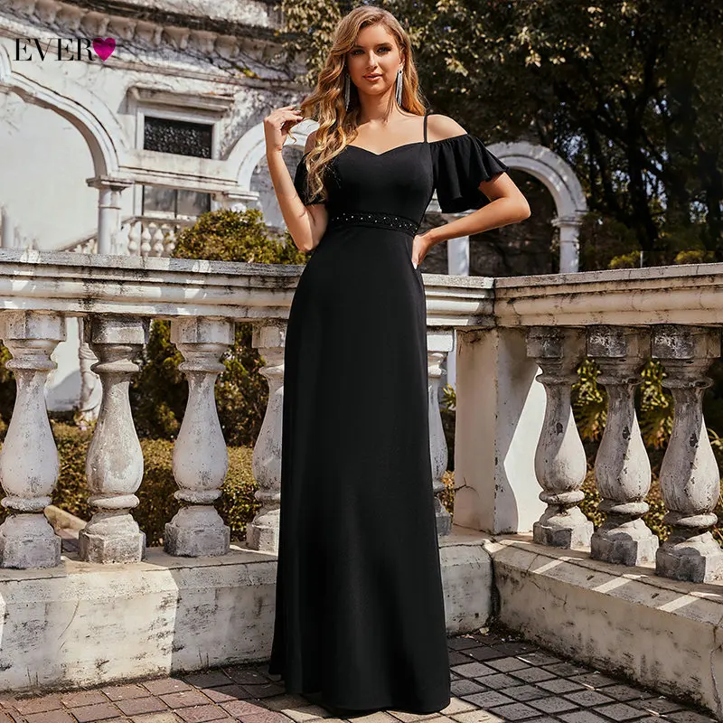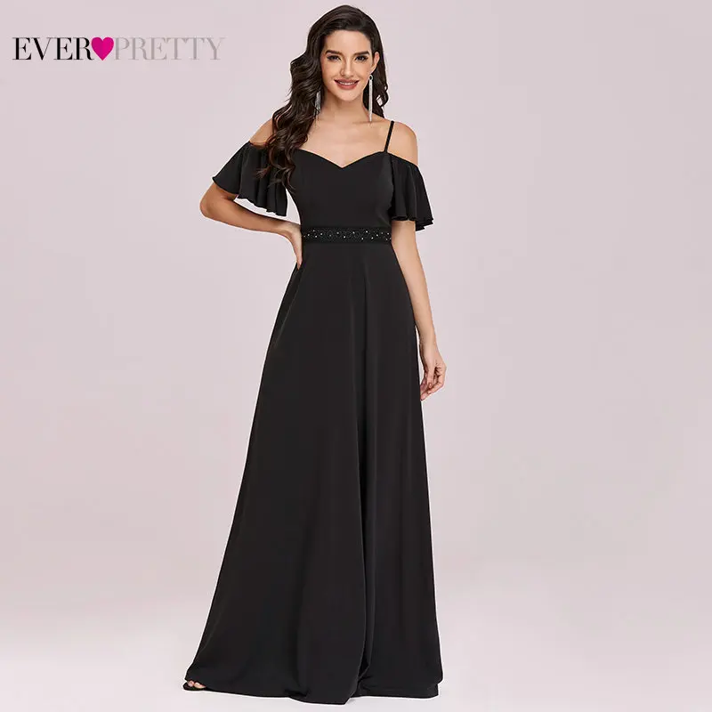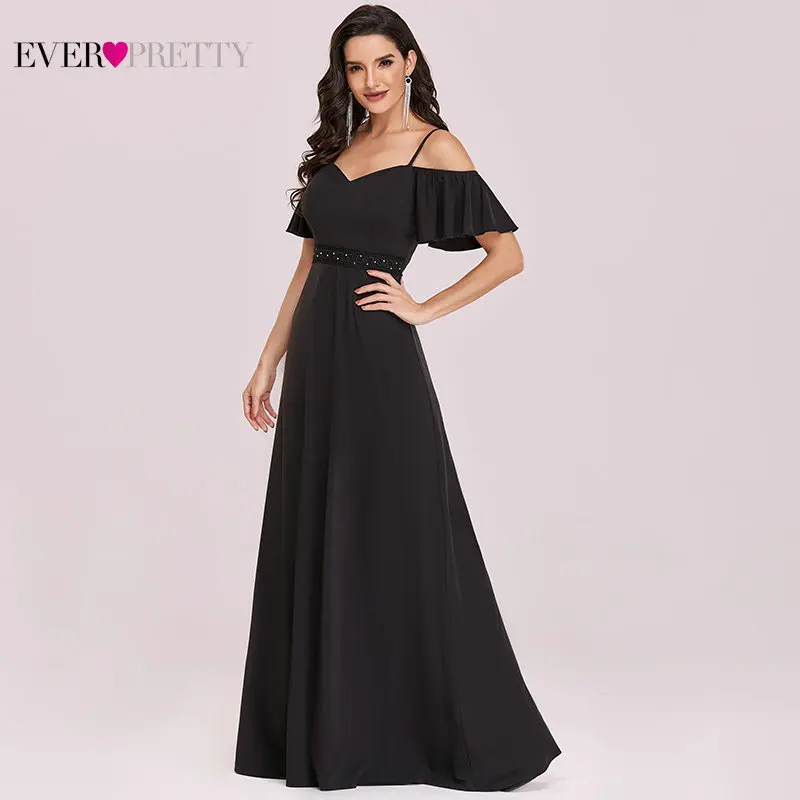 Черные вечерние платья Ever Pretty, Элегантное Длинное Вечернее Платье трапециевидной формы с v-образным вырезом на тонких бретельках, вечернее платье, Robe De Soire De Mariage EE00257