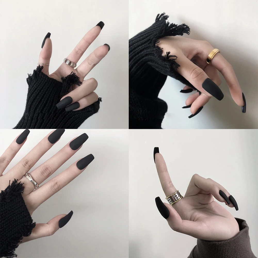 Накладные ногти, наращивание ногтей, матовые, красные, черные, белые, 24 шт., товары для профессионального маникюрного салона