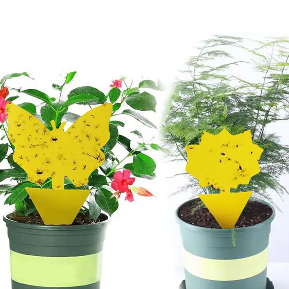 Клейкая доска в форме желтой бабочки, двусторонняя клейкая, для растений, цветов, овощей, москитных мух, ловушка для насекомых, 20 шт.