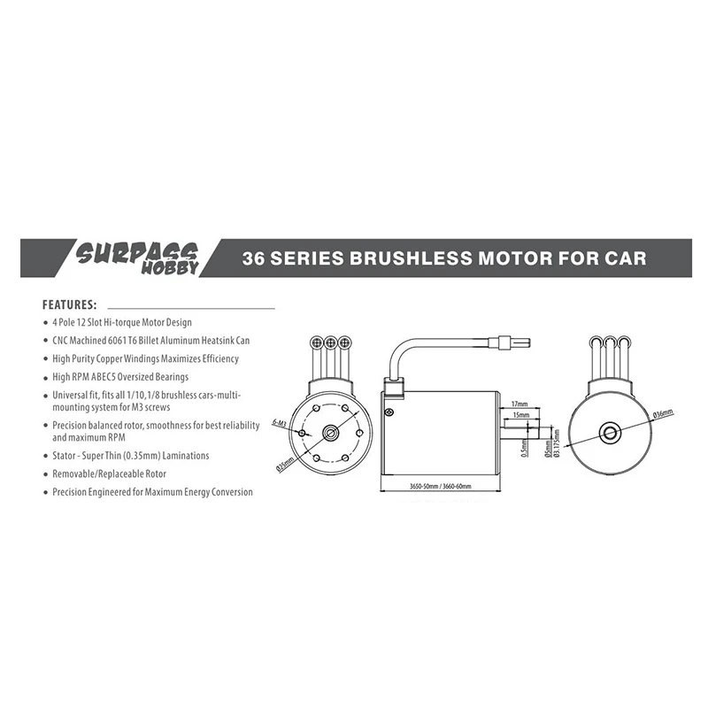 Водонепроницаемый бесщеточный двигатель SURPASS HOBBY KK 3660 3,175 мм кв для автомобилей 1:10 2S 3S RC GTRLexus