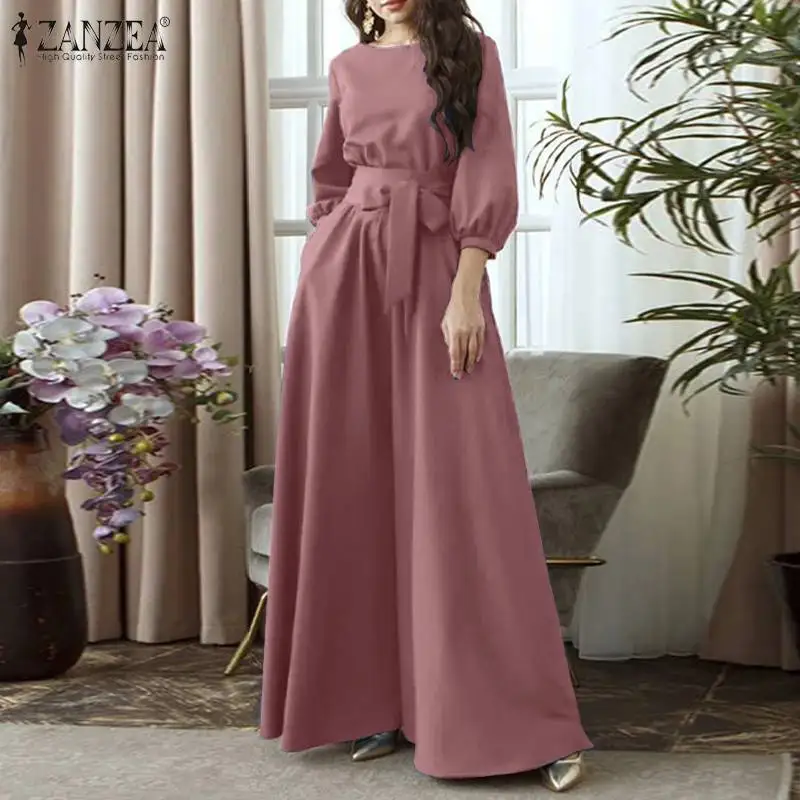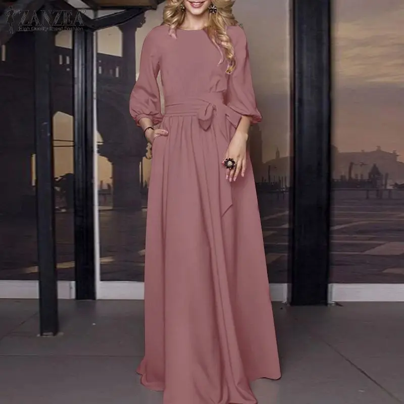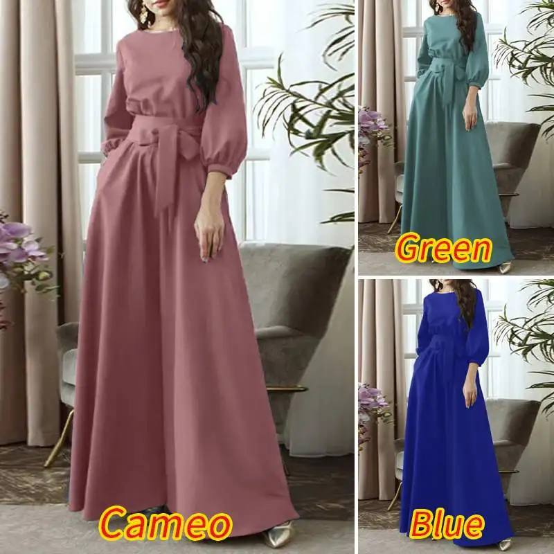 Женское длинное вечервечерние платье, винтажное однотонное Макси-платье с рукавом 34, для весны