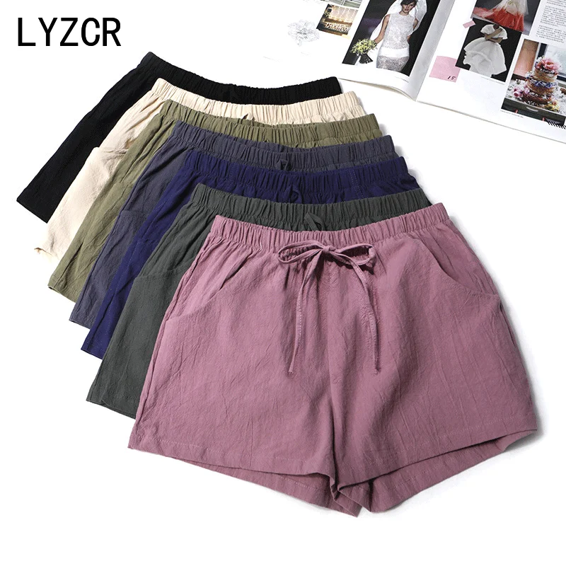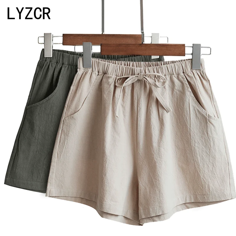 LYZCR Летние повседневные женские хлопковые шорты ярких цветов с высокой талией, шорты для женщин с широкими штанинами цвета хаки, женские шорты 2021