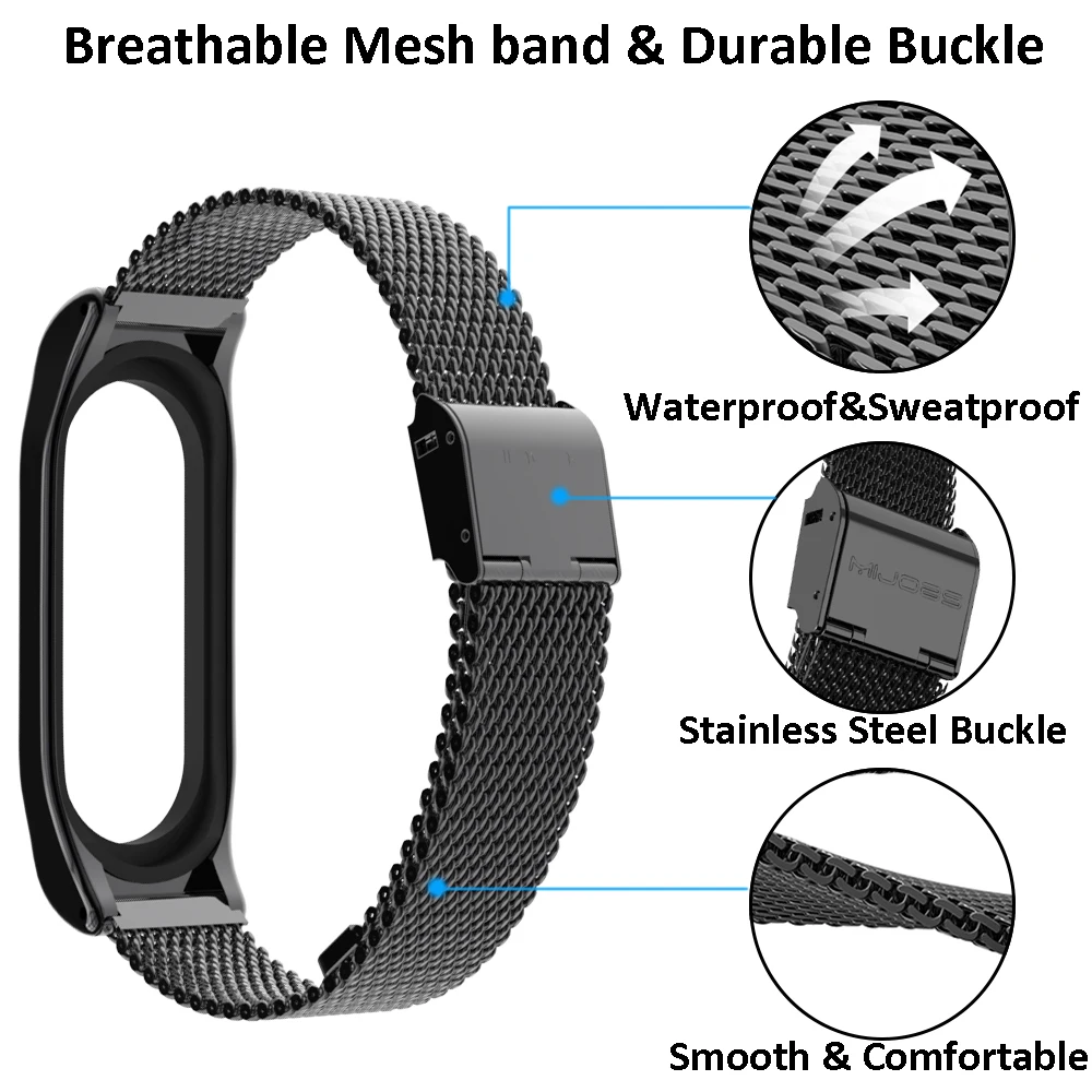 Металлические ремешки для браслета Mi Band 5 6, браслет из нержавеющей стали для Xiaomi Mi Band 3, Mi Band 5