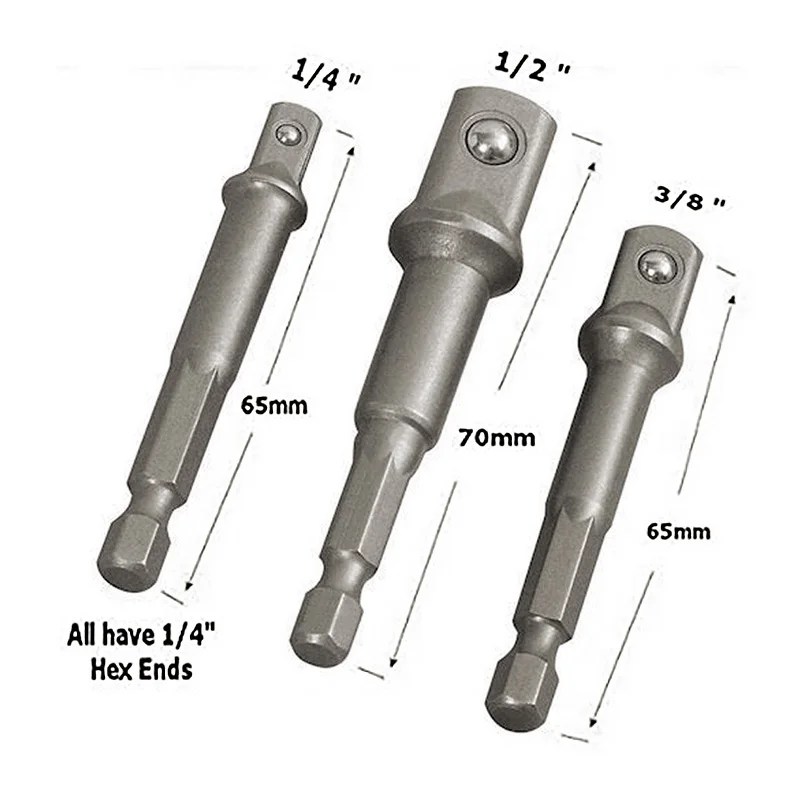 3 шт.компл. переходник из хромованадиевой стали с шестигранным хвостовиком на 14 дюйма, 38 дюйма, 12 дюйма, удлинительные сверла, Набор бит с шестигранным хвостовиком, электроинструменты