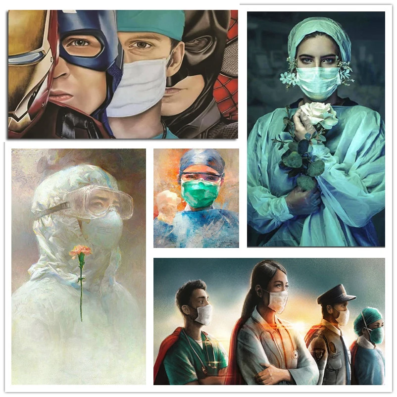 Алмазная 5D живопись сильный герой, Набор для вышивки крестиком, мозаика ручной работы, искусство, алмазная вышивка с врачом, медсестрой, украшение для дома, подарок