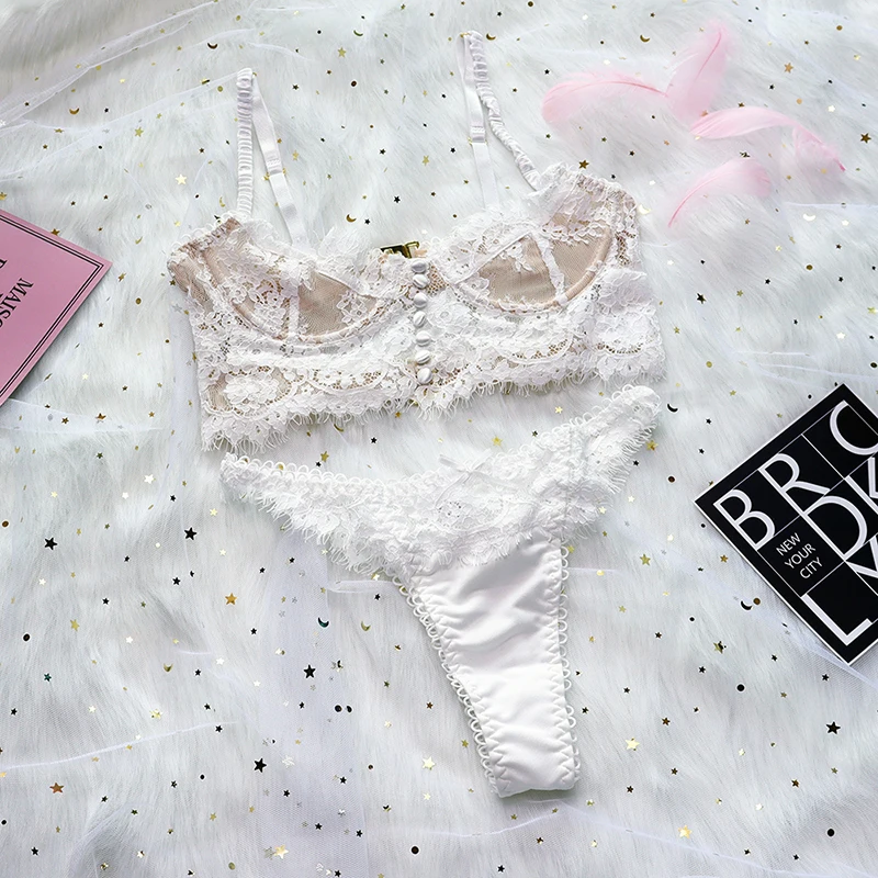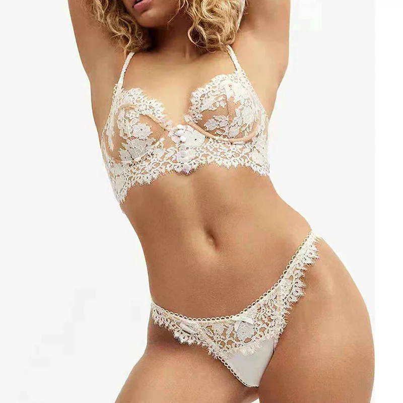 Комплект женского нижнего белья, кружевной Цветочный комплект с бюстгальтером, стринги и косточками, 2021