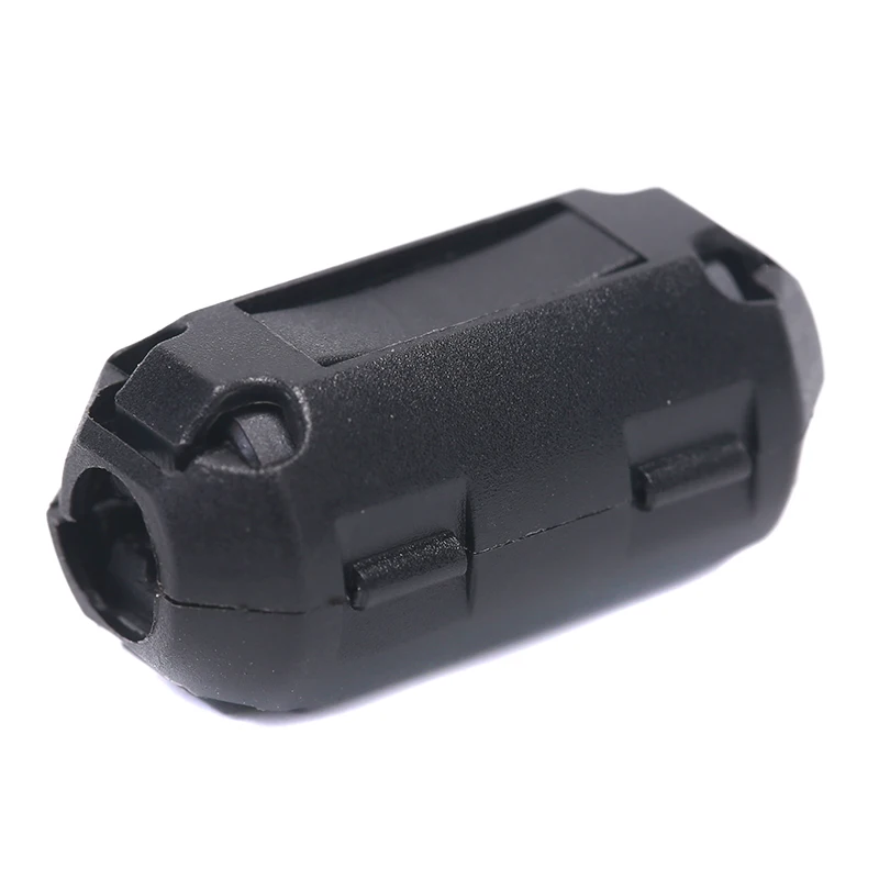 Черный пластиковый закрытый ферритовый сердечник для 7 мм шнуров питания переменного тока.
