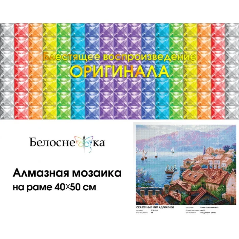 "Сказочный мир Адриатики" Алмазная мозаика на подрамнике 40х50 см. Белоснежка. 508-ST-S