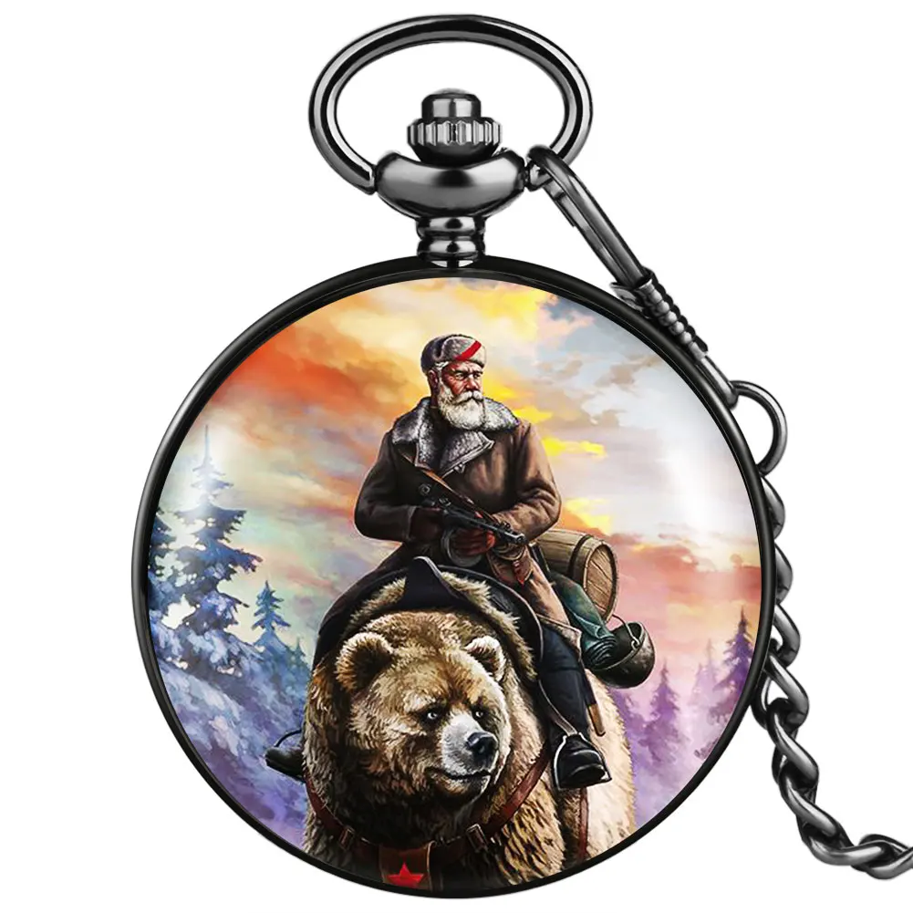 Мужские карманные часы, черный и белый циферблат с узором Сталина, ...