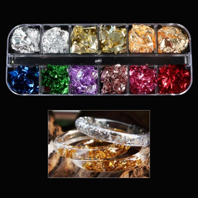 Флуоресцентная эпоксидная смола для дизайна ногтей, 12 сетоккоробка, голографические блестки блесток