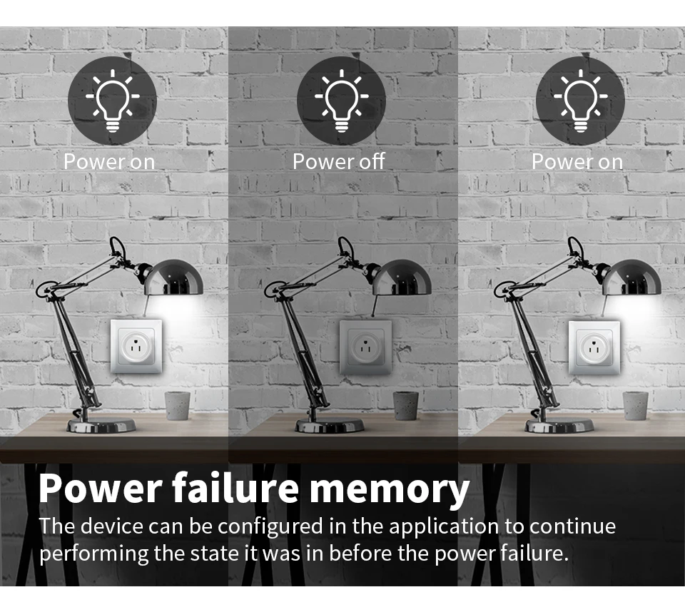 Устройство может быть настроено в приложении, чтобы продолжить выполнение состояния, в котором оно было до сбоя питания.