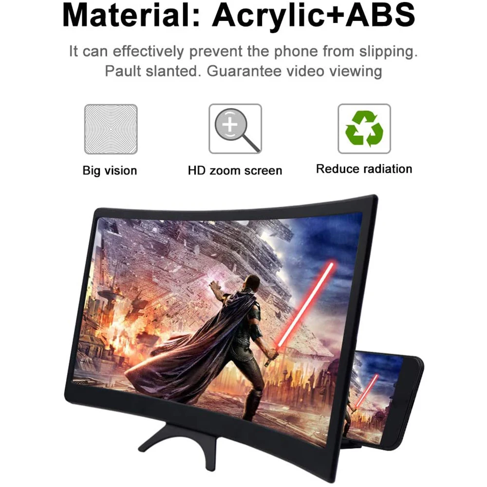 12 дюймов изогнутый телефон экран усилитель складной 3D HD увеличитель для экрана телефона экран Лупа держатель телефона Подставка мобильный проектор видео кино
