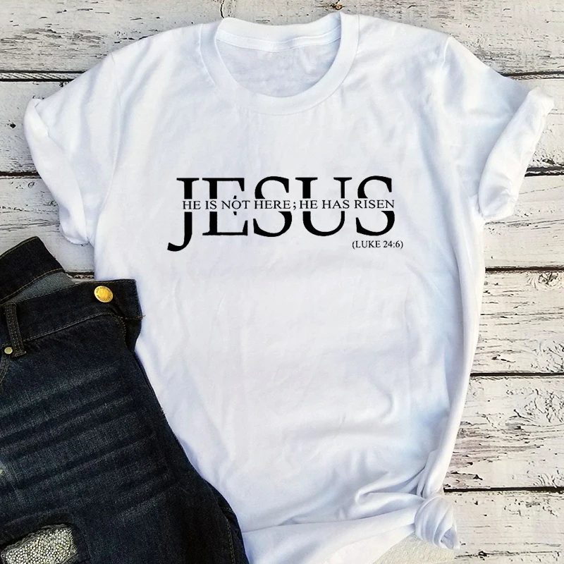 Греческие футболки для женщин размера плюс Иисуса одежда для пар, женская футболка, он не здесь у вас есть Райзен религиозные уличная печати 2021 новый XL