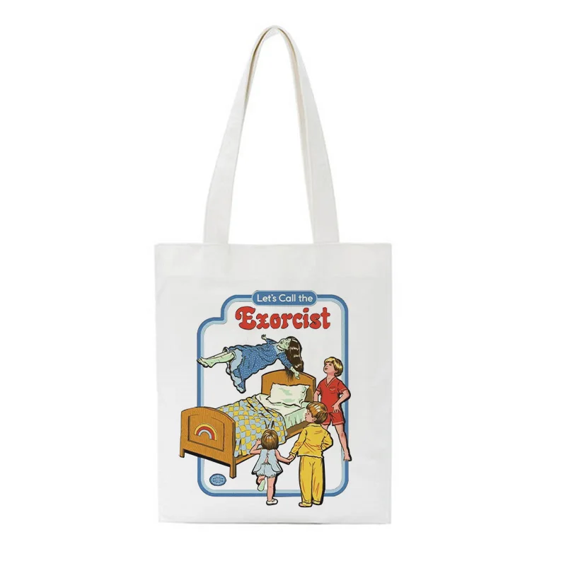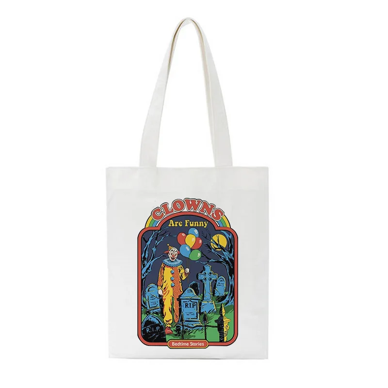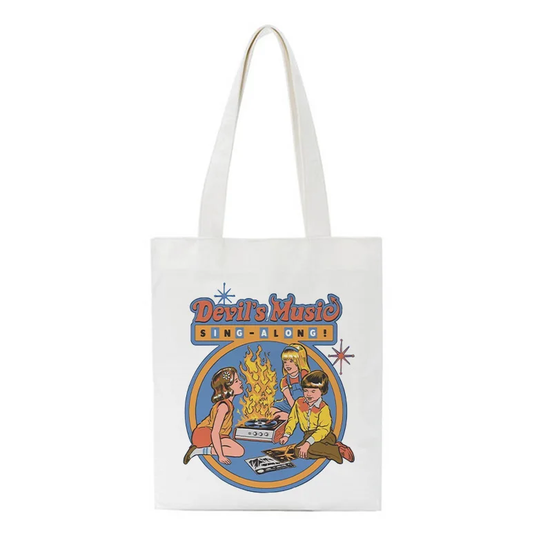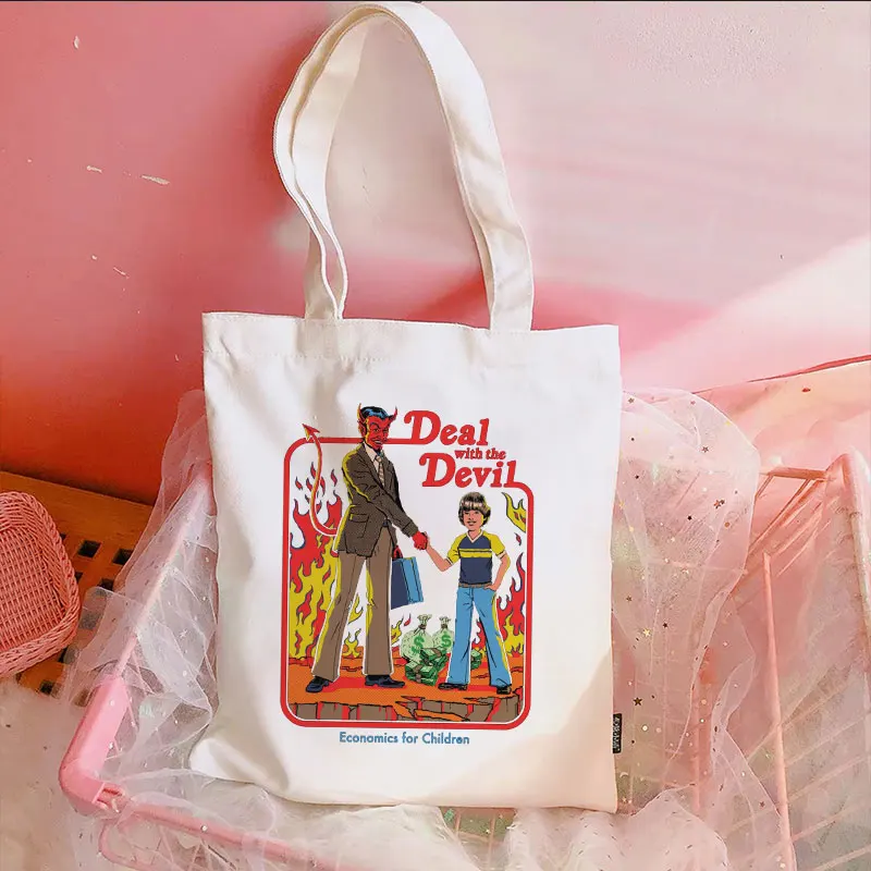 Сумка-тоут женская холщовая с принтом Death Evil Devil, модный многоразовый саквояж на плечо, Забавный мешок для покупок в стиле Харадзюку