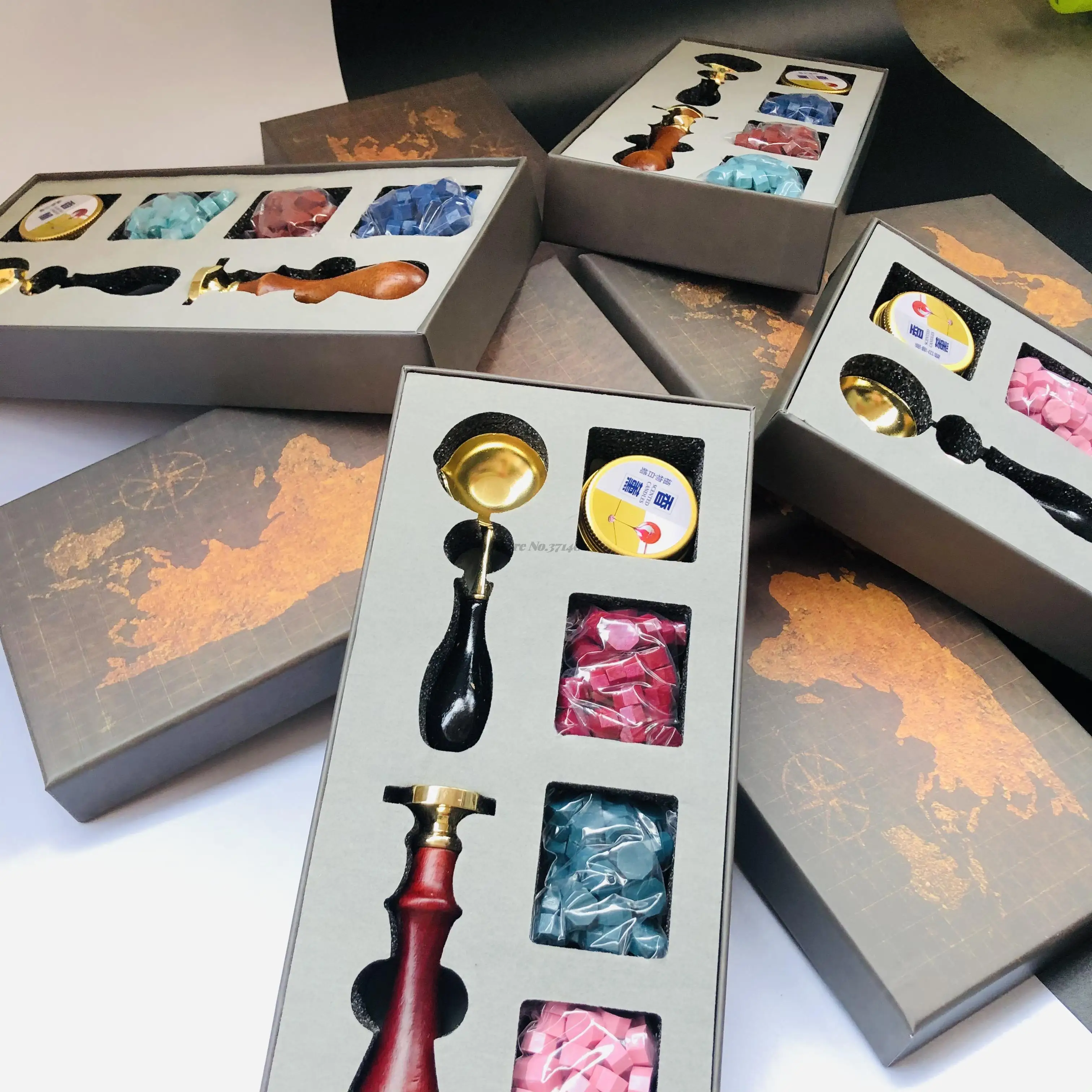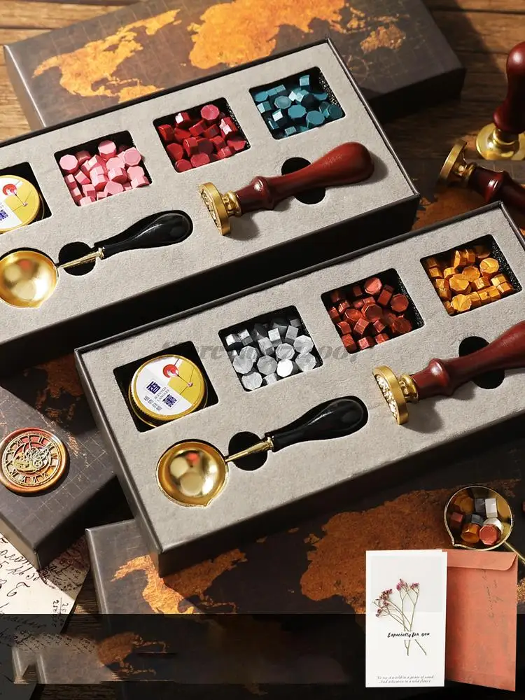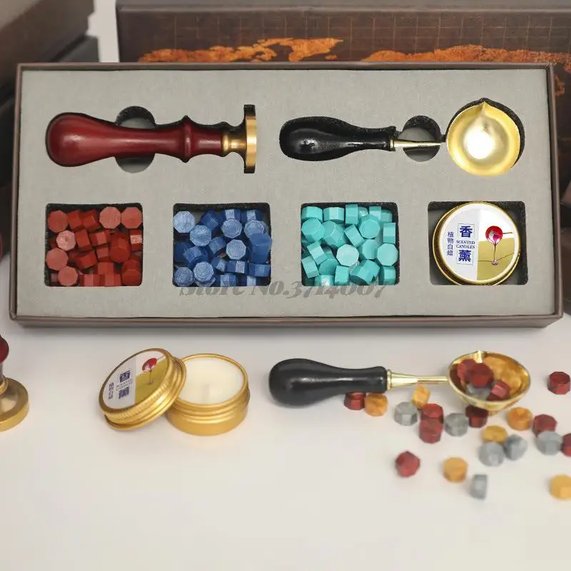 Винтажный набор для запечатывания восковых штамп, набор для планшета, бисер, свеча, съемная ложка, с коробкой для хранения, набор, сделай сам, конверт, приглашение, ремесло
