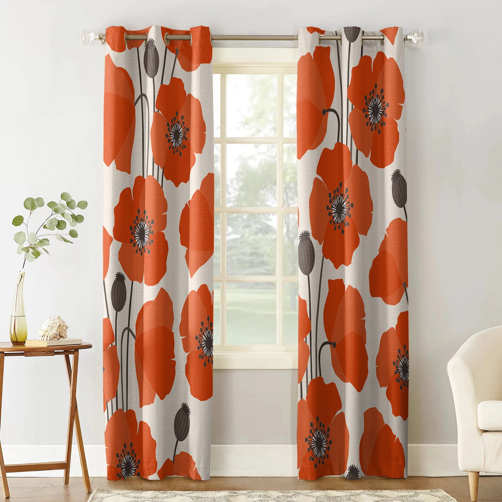 Абстрактные оконные шторы с красными маками, домашний декор, шторы для гостиной, спальни, кухни, Дверные Шторы
