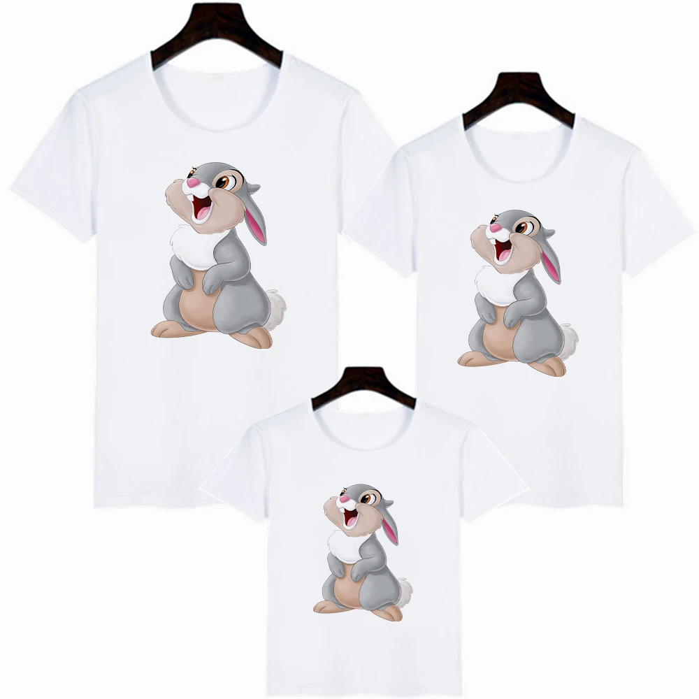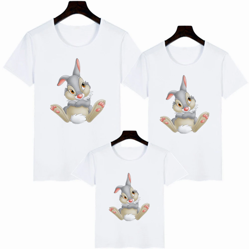 Новая летняя модная футболка для маленьких мальчиков и девочек, топы с мультяшным Кроликом, Детская футболка с коротким рукавом, наряды для семейного образа