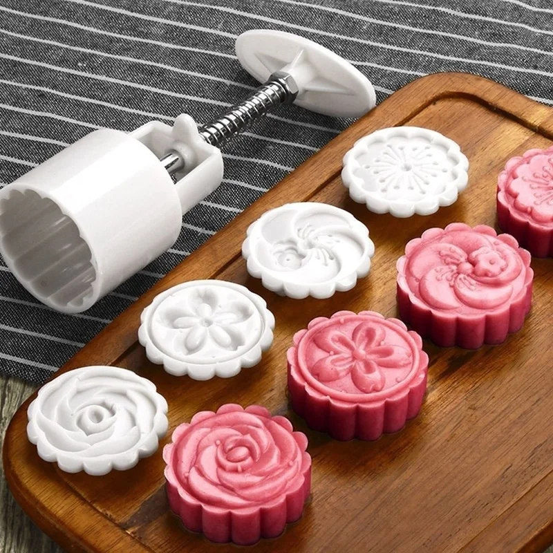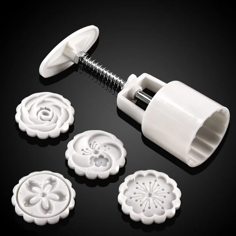 Форма для вырезания лунного торта, 5 шт.компл., в форме цветка, 4 штампа, ручная печать, набор для выпечки печенья, инструменты для праздников середины осени, лунных тортов