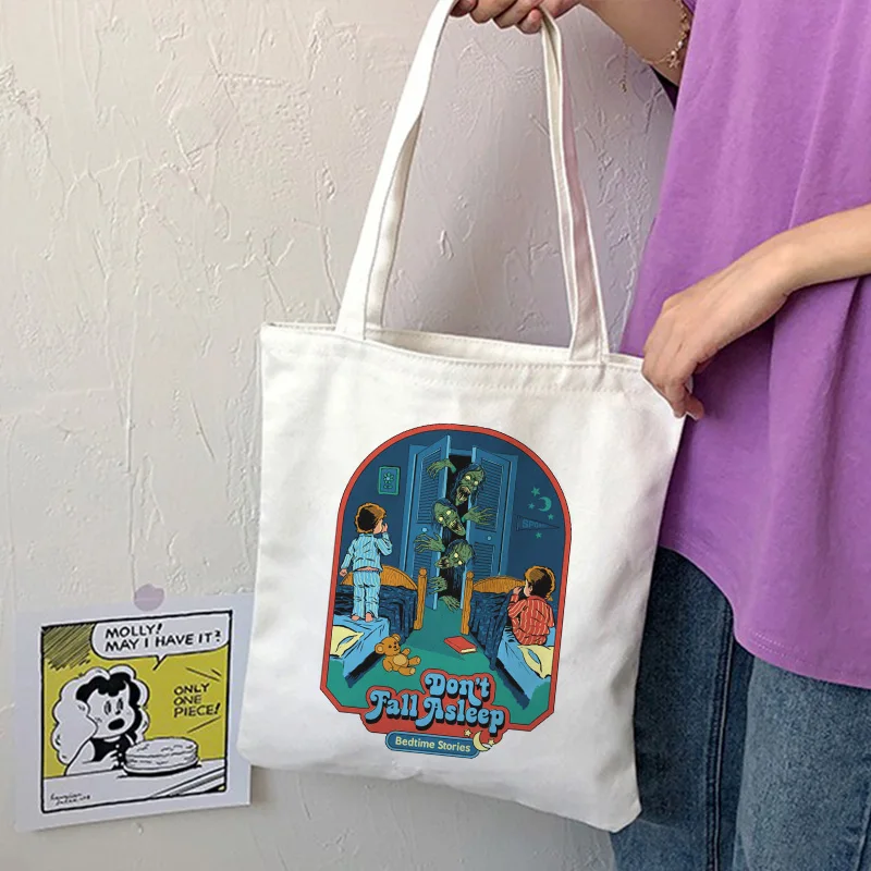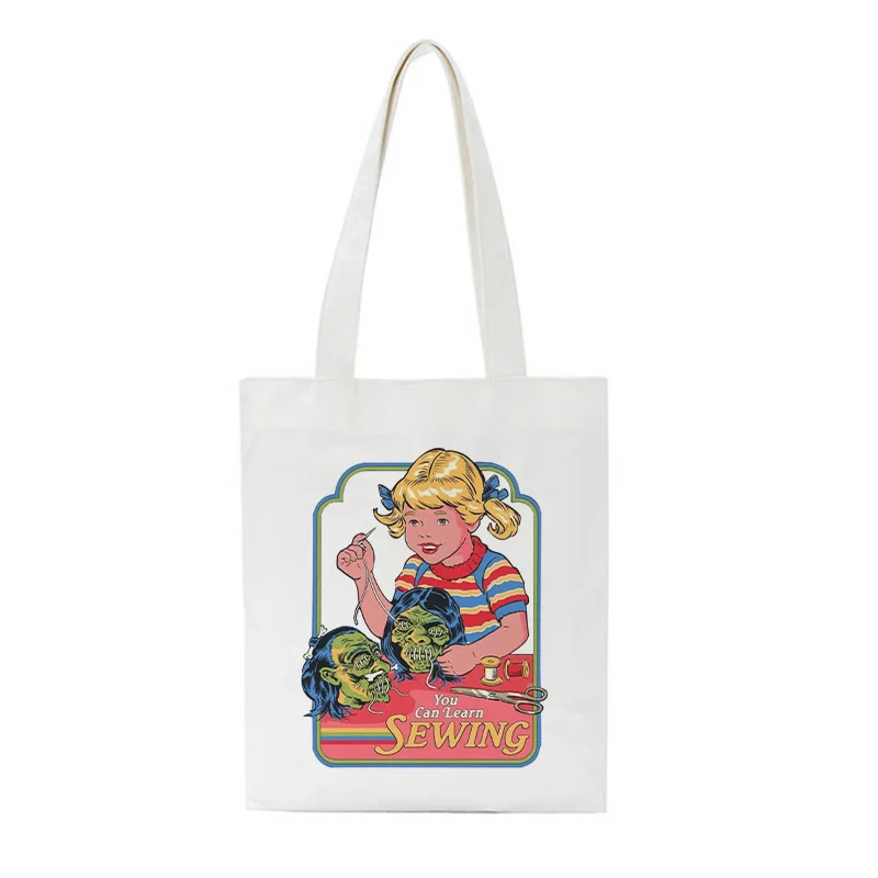Холщовая Сумка-тоут для женщин, повседневная мультяшная ведьма, инопланетянин, с принтом в стиле Харадзюку, вместительная смешная модная многоразовая Сумочка для покупок