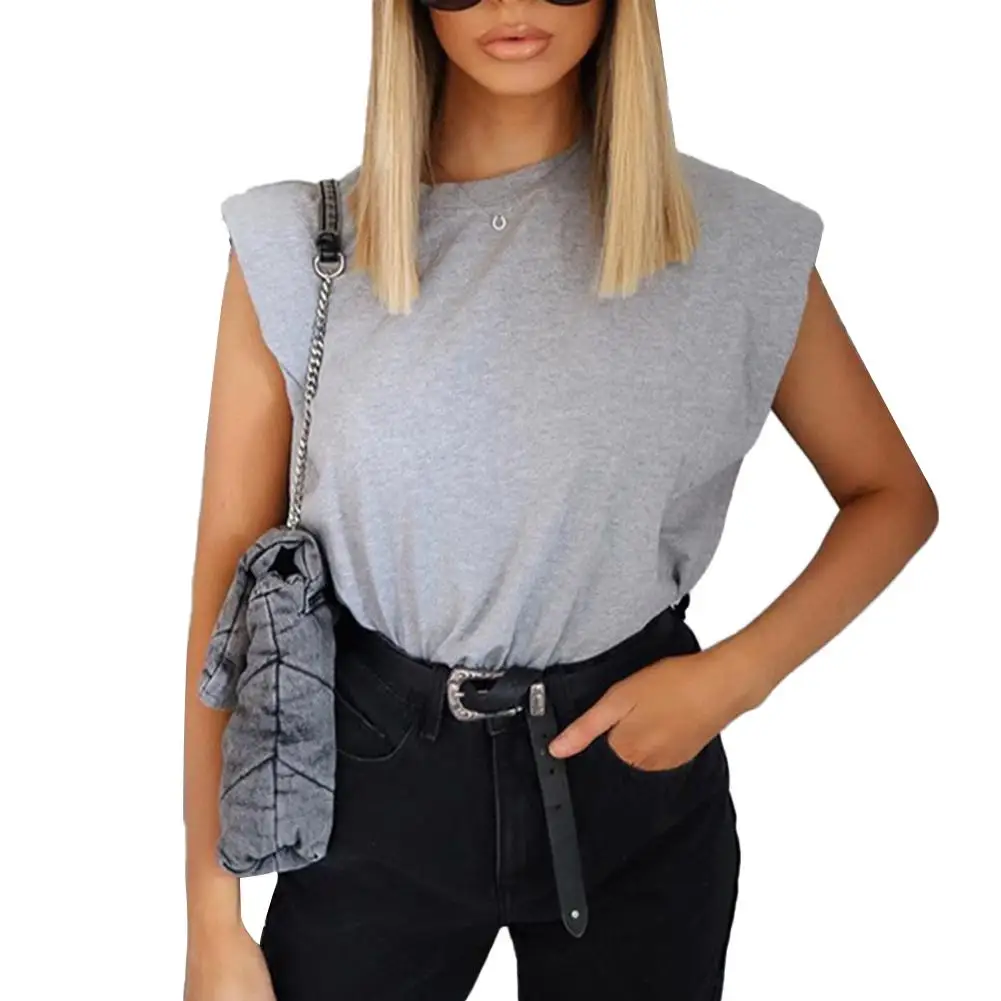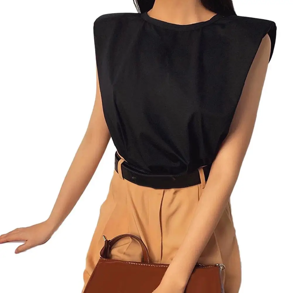 Женская блузка, повседневная, с круглым вырезом, с подплечниками, без рукавов, джемпер, блузка, женский джемпер, топ, блузка