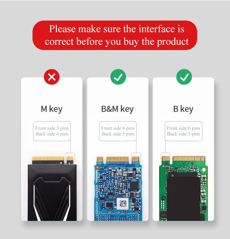 4. Поддерживает 22*30 мм. 22*42 мм, 22*60 мм, 22*80 мм NGFF твердотельный жесткий диск (жесткий диск в комплект не входит).