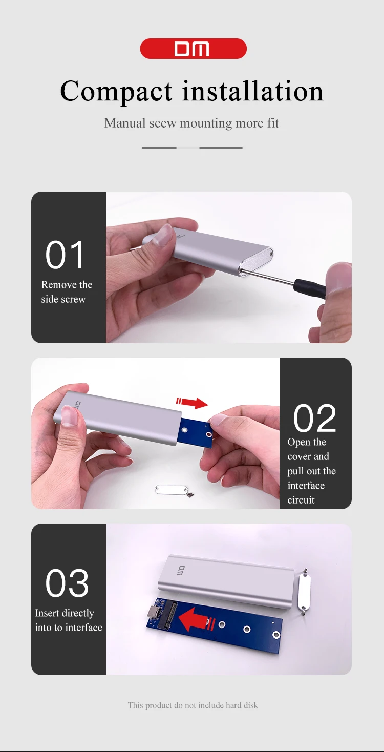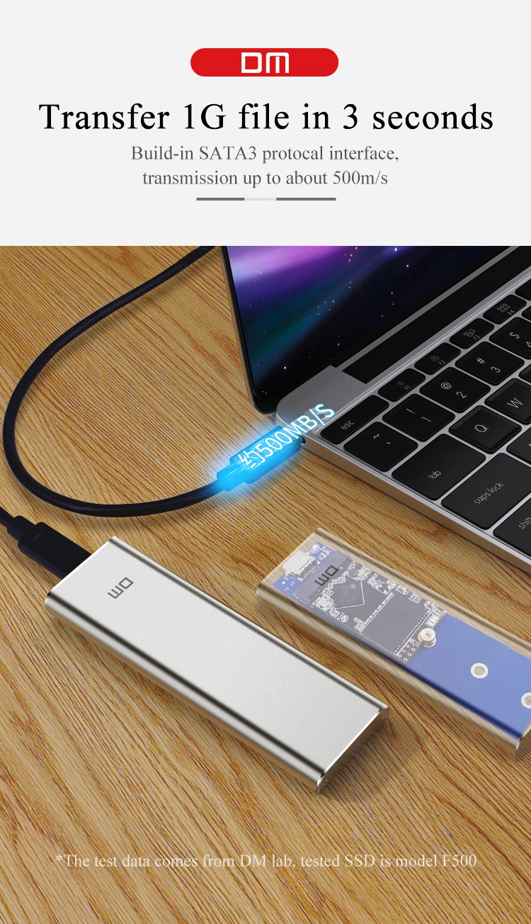 Корпус внешнего жесткого диска DM M.2 NGFF на TYPE C 3,1 Для M.2 SATA SSD USB 3,1 2230224222602280 HD500