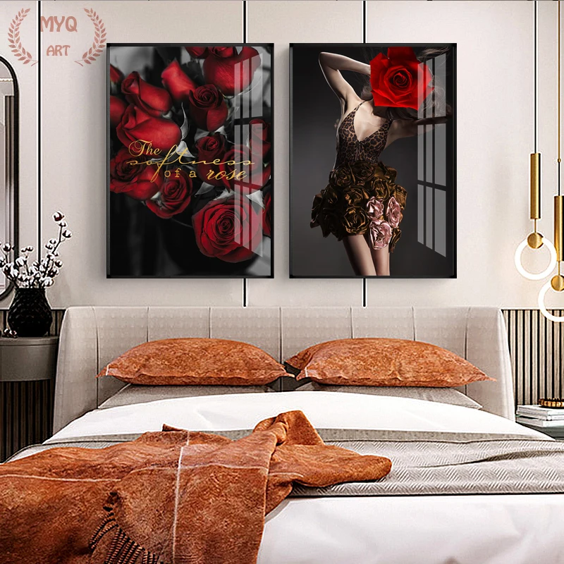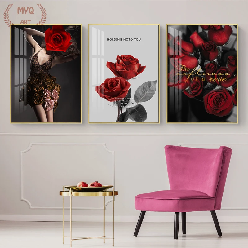 Скандинавский модный постер, красная роза, цветок, цветок в скандинавском стиле, настенная Картина на холсте, современная картина для декора гостиной