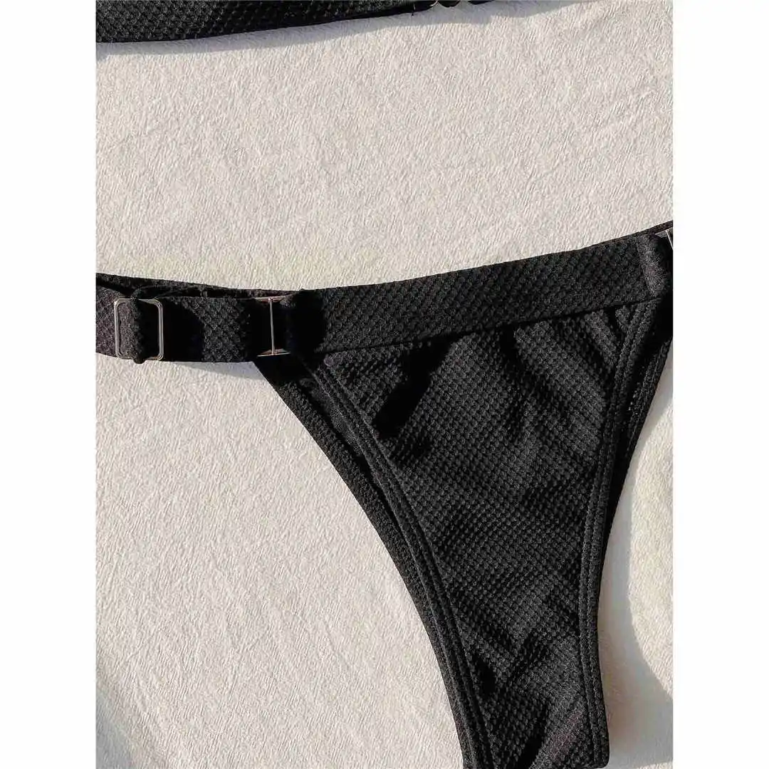 Женский купальник в рубчик, комплект бикини из двух частей с металл...
