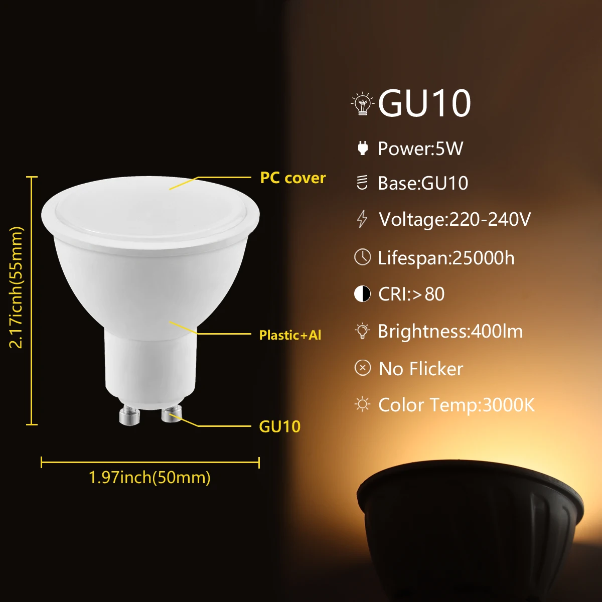 Страна: ES Emitting Color: GU10 5W WARM 3000K Wattage: 5w Support Dimmer: No Доставка: Standard Shipping 24.12.2021