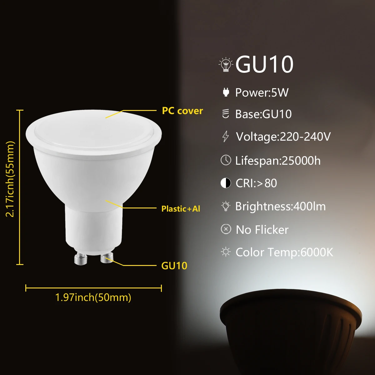 Страна: ES Emitting Color: GU10 5W COLD 6000K Wattage: 5w Support Dimmer: No Доставка: Standard Shipping 21.10.2021