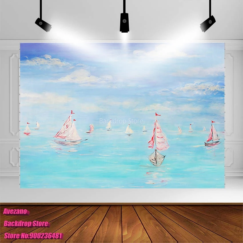 Avezano фон для фотосъемки с изображением картины с изображением голубого океана и парусный спорт фон с облаками декорации фотостудии фотофонов и мы вышлем вам фото обои