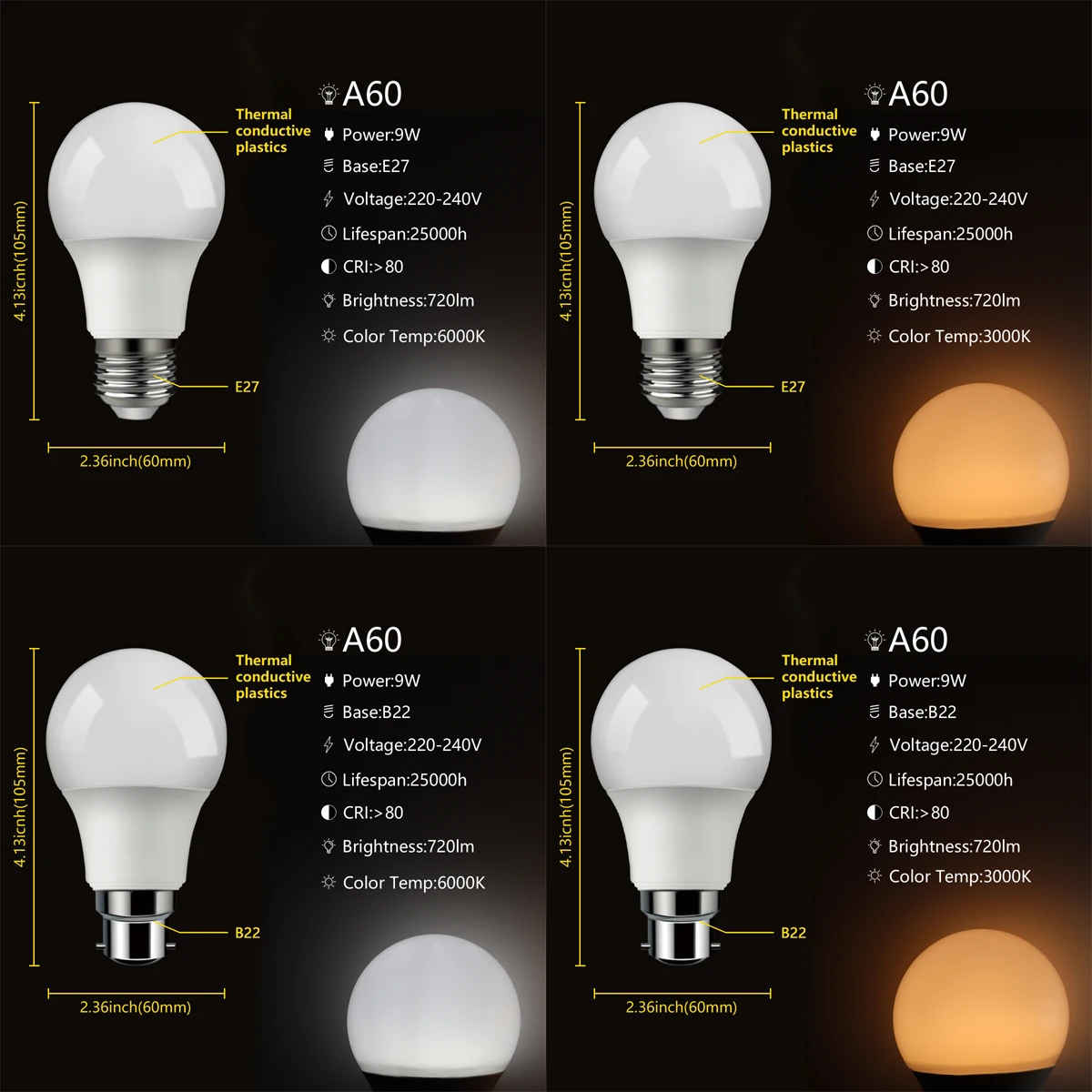 Светодиодная лампа E14 B22 E27 220 В SMD2835 3 Вт 5 Вт 6 Вт 8 Вт 9 Вт 10 Вт 12 Вт 15 Вт, светодиодная лампа холодного и теплого белого света, светодиодный ные лампы для внутреннего декора