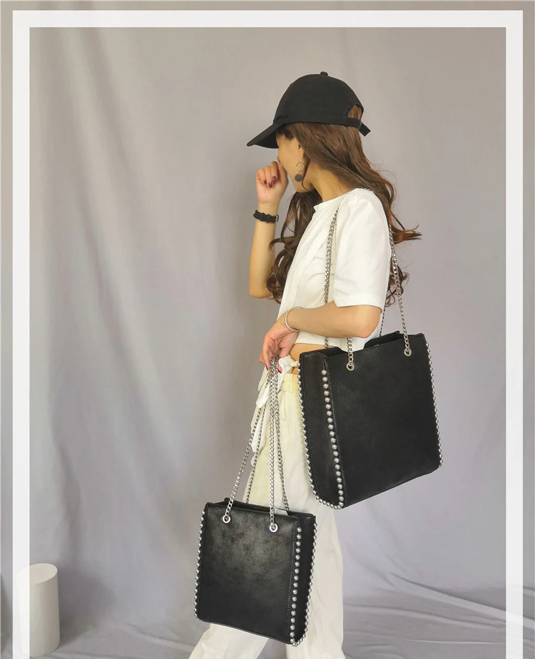 Сумка-тоут женская с заклепками в стиле ретро, дизайнерский саквояж на плечо из экокожи, роскошный вместительный мессенджер с бусинами, большие портфели