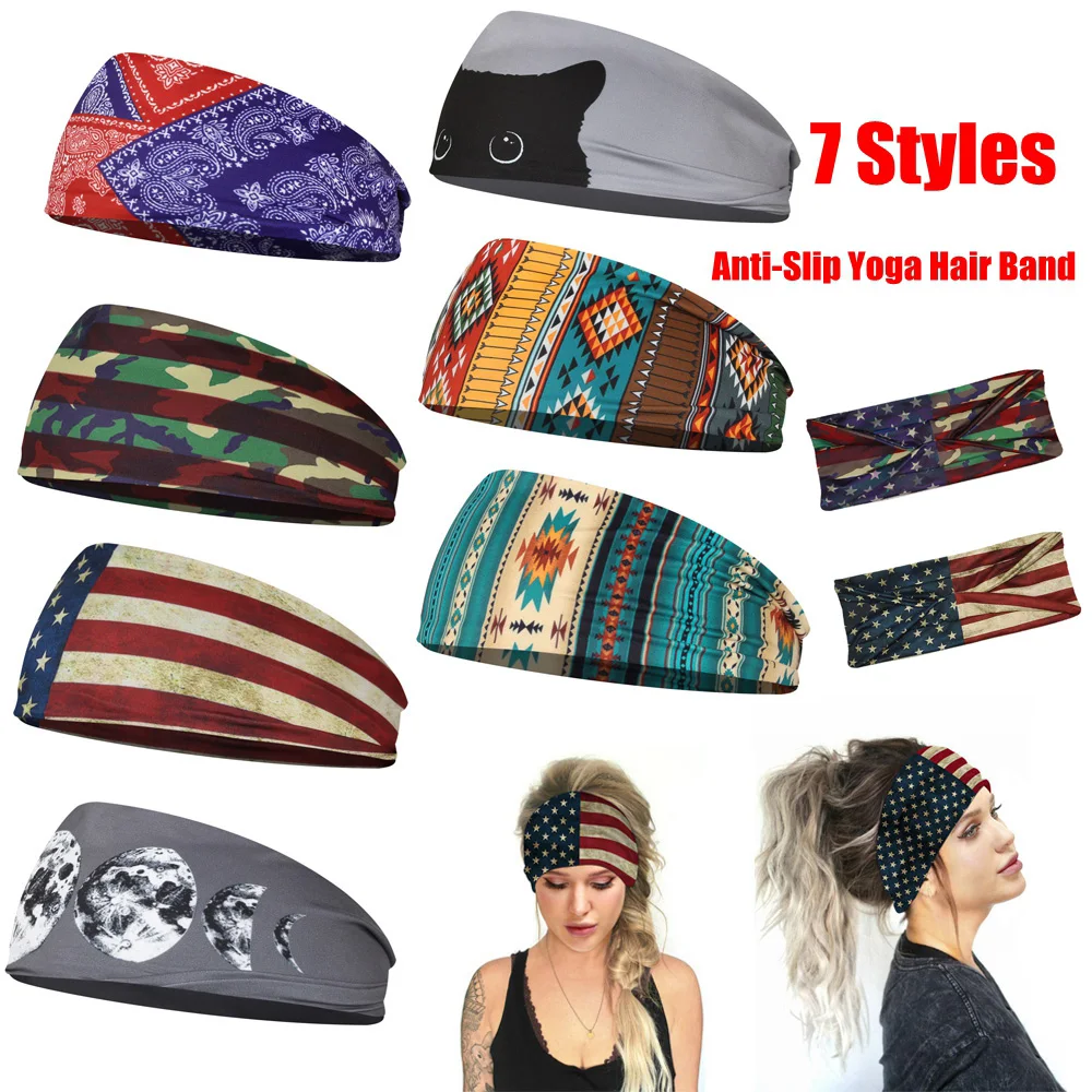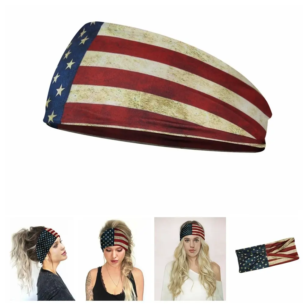 Эластичная спортивная повязка на голову с принтом флага для мужчин и женщин, нескользящая повязка на голову для фитнеса и йоги, 1 шт.