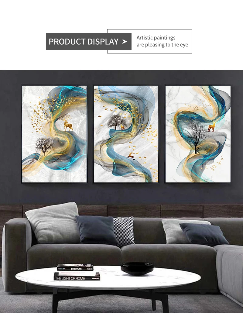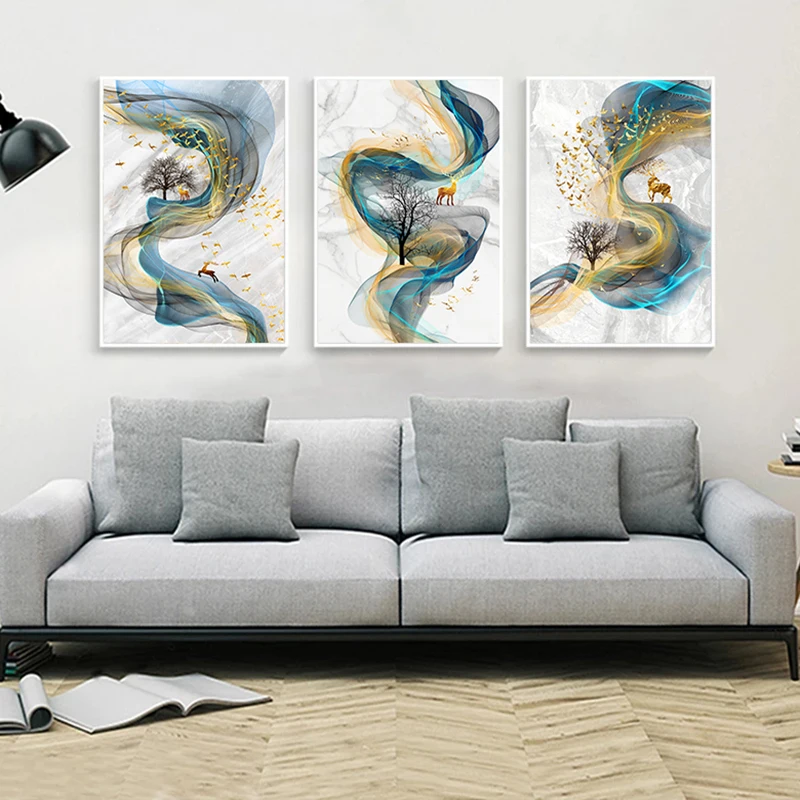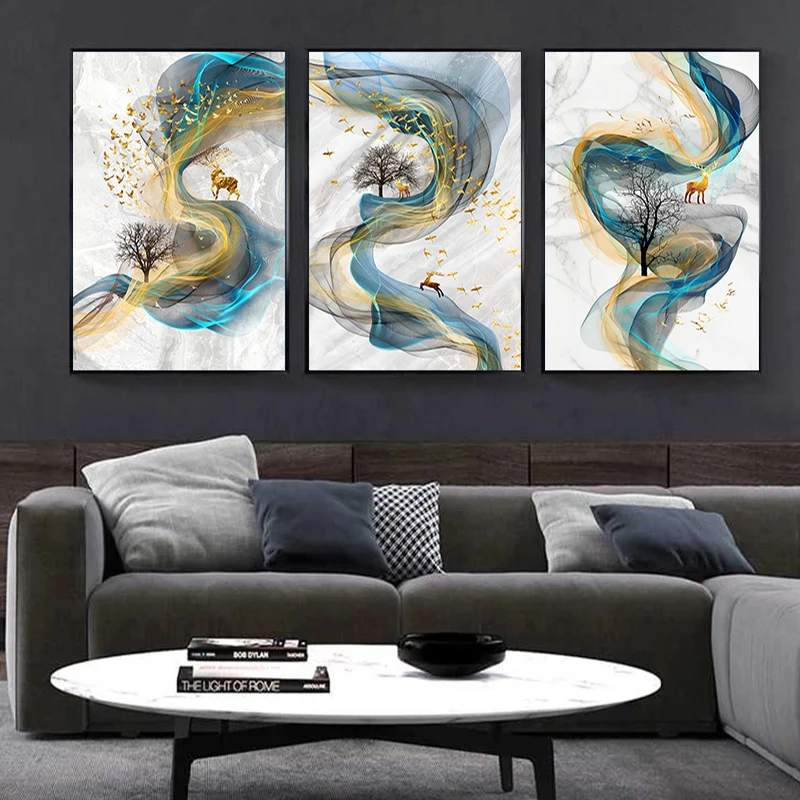 Абстрактная Золотая лента с оленем, роскошный постер, Картина на холсте, Минималистичная картина, домашний декор, Настенная картина для гостиной, дизайн