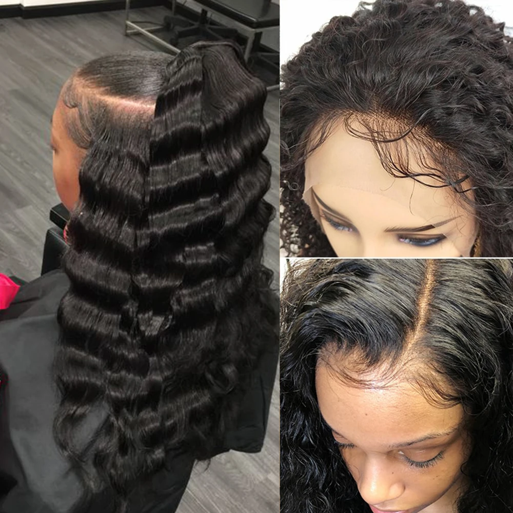 Парики HD невидимые из человеческих волос на сетке спереди, свободные, с глубокой волной, 13x 4, передние и передние, для чернокожих женщин, перуанские на сетке