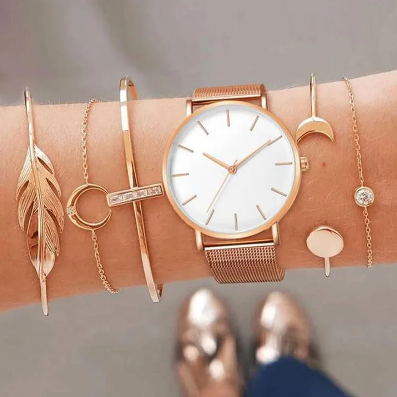 Часы наручные женские кварцевые, брендовые модные роскошные из нержавеющей стали розового золота