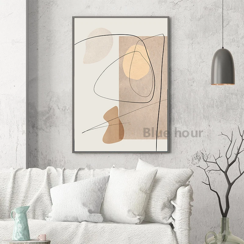 Нейтральная настенная живопись земли, холст, абстрактная Геометрическая линия, рисование, плакаты, Современные художественные принты