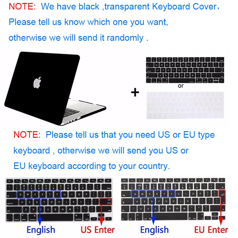 (Примечание: у нас есть черный, прозрачный, чехол для клавиатуры, пожалуйста, сообщите нам, какой цвет вы хотите, в противном случае мы отправим его случайным образом. О ЕС вход или США введите крышку клавиатуры, пожалуйста, также скажите нам, какой тип вам нужен. Спасибо!)